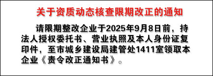 - 關(guān)于資質(zhì)動(dòng)態(tài)核查《責(zé)令(限期)改正通知書》的送達(dá)公告